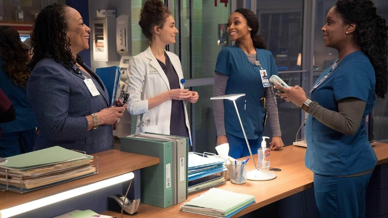 V.l.: Sharon Goodwin (S. Epatha Merkerson), Dr. Sarah Reese (Rachel DiPillo), April Sexton (Yaya DaCosta), Maggie Lockwood (Marlyne Barrett).