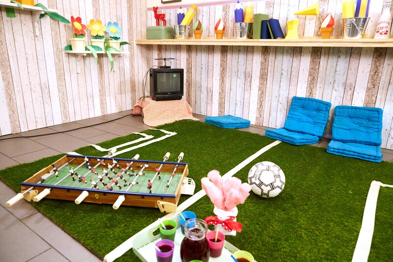 Heute läuft das große Fußballmatch im Fernsehen! Alex und die Kochkids treffen sich zum gemeinsamen Schauen! Die passenden Snacks dürfen da natürlich nicht fehlen. Isabell und Damian gaberln sich mit ihren Ballkünsten in die Küche. Es steht einiges am Programm: Nachos und ein feuriger Salsadip, knusprige Erdnüsse und Karamellpopcorn für die Naschkatzen. Na hoffentlich geht sich das alles bis zum Anpfiff aus! Am Basteltisch gibt es etwas ganz Besonderes! Marie, Amos, Aaron und Deniz zaubern den Köchen heute eine süße Überraschung: Zuckerwatte! Statt beim Tisch zu essen, wird heute am selbstgemachten Fußballrasen gegessen.