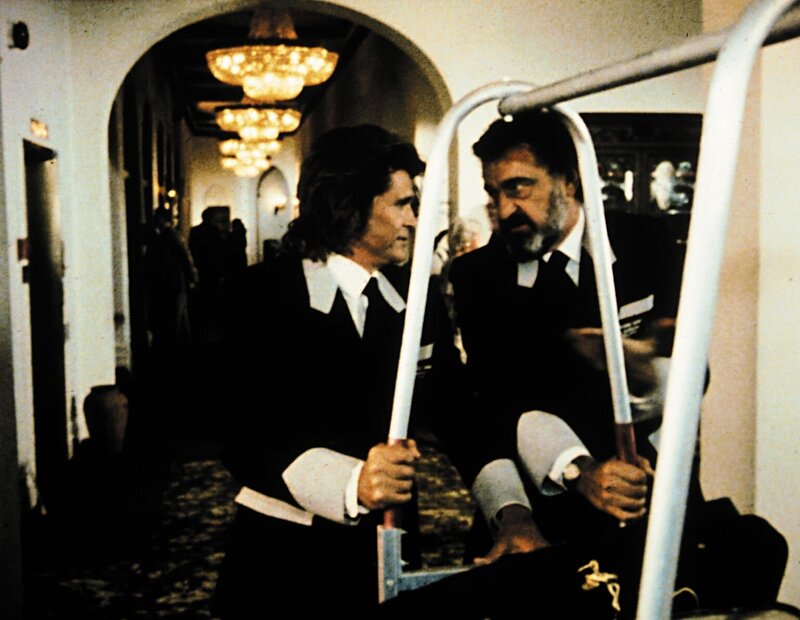 Jonathan (Michael Landon, l.) und Mark (Victor French, r.) müssen diesmal ihren Auftrag als Hotelpagen erfüllen.