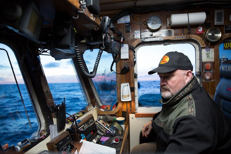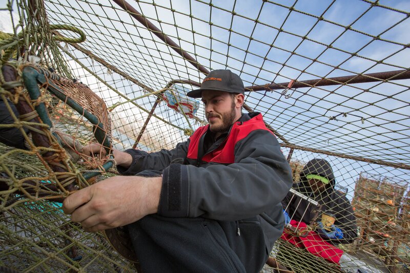 Unafraid to get his hands dirty, Brenna A Captain Sean Dwyer helps his crew rig pots.