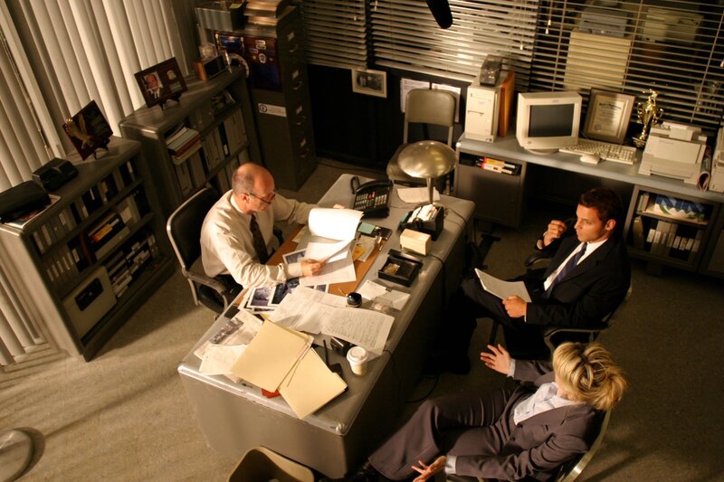 Chris Lassing (Justin Chambers, hinten r.) und Det. Lilly Rush (Kathryn Morris, vorne r.) unterhalten sich mit Lt. John Stillman (John Finn, l.) über den neuesten Fall.