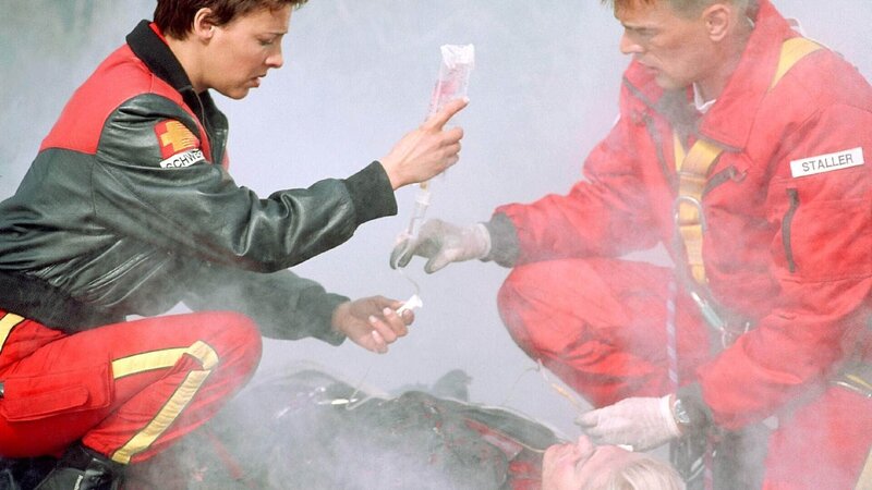 Die drei Freunde Stefan, Bernhard und Lasse treffen sich heimlich auf dem Gelände einer stillgelegten Chemiefabrik. Voller Stolz präsentiert Stefan einen Revolver, den er seinem Vater entwendet hat. Begeistert beginnt er mit der Waffe auf ein altes Fass zu schießen. Die Kinder bemerken nicht, dass plötzlich Dampf aus dem Einschussloch austritt. Ausgelassen toben die Kids über das Gelände und machen sich schließlich einen Spaß daraus, ihren Freund Lasse in die Fabrikhalle einzuschließen. Plötzlich verendet vor Lasses Augen eine Ratte in dem wabernden Dampf, der noch immer aus dem Fass austritt und der mittlerweile den ganzen Boden bedeckt. Da sich das Tor nicht öffnen lässt, versucht der Junge über eine Leiter an eines der Fenster zu gelangen. Dabei rutscht er aus, fällt rücklings zu Boden und bleibt ohnmächtig liegen. Seine Freunde alarmieren sofort den Rettungsdienst. Aber auch die Medicopter-Crew kann das Fabriktor nicht öffnen. Notärztin Dr. Gabriele Kollmann seilt sich durch ein Dachfenster zu dem verletzten Jungen ab. Der giftige Dampf hat fast das Gesicht des Jungen erreicht, und Gabriele lässt ihn sofort von Ralf Staller in den Helicopter ziehen. Bei der Rettungsaktion löst sich plötzlich ein Eisenteil und schlägt kurz neben Gabriele aufs Podest. Es kommt zur Katastrophe: Durch den Aufprall entsteht ein Funke, der den Dampf zur Explosion bringt. Gabriele kann sich nicht mehr in Sicherheit bringen, als die Fabrik in die Luft fliegt. Mit letzter Kraft schleppt sie sich aus dem brennenden Inferno. Sanitäter Ralf Staller leistet sofort erste Hilfe bei seiner Kollegin. Die Ärztin hat schwerste Verbrennungen erlitten, und ihre Lunge scheint durch die giftigen Dämpfe völlig zerstört zu sein. Für Gabriele geht es um Leben und Tod...