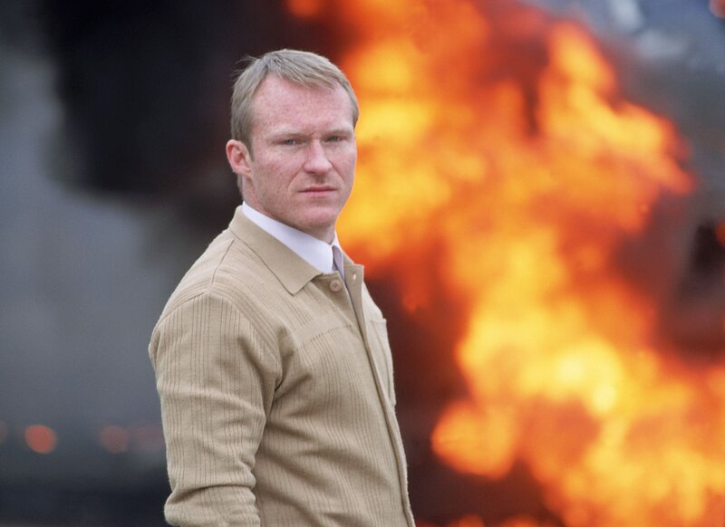 Paul Wagner (Robinson Reichl) vor dem brennenden Tanklastwagen, der mit Hilfe des Medicopters im sicheren Abstand zum Kinderheim noch aufgehalten werden konnte.