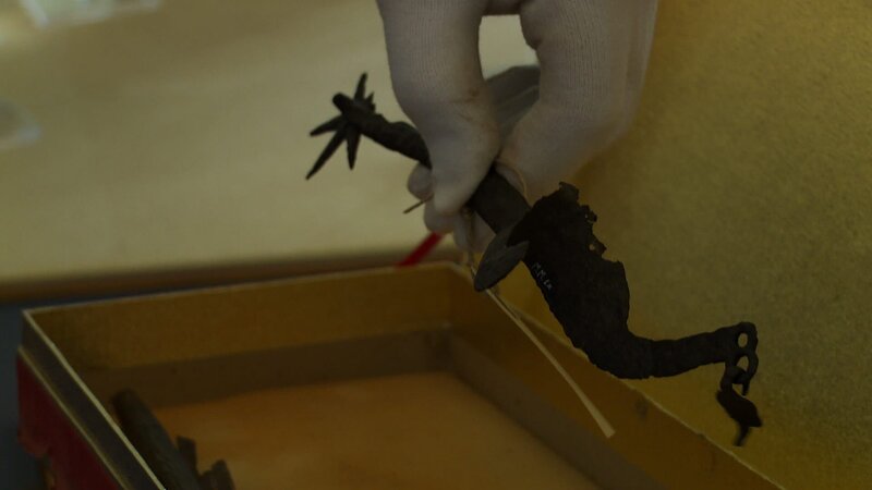 Die gefundenen Sporen sollen vom Schlachtfeld stammen. Tim hofft, auch eine Sperrspitze zu finden.