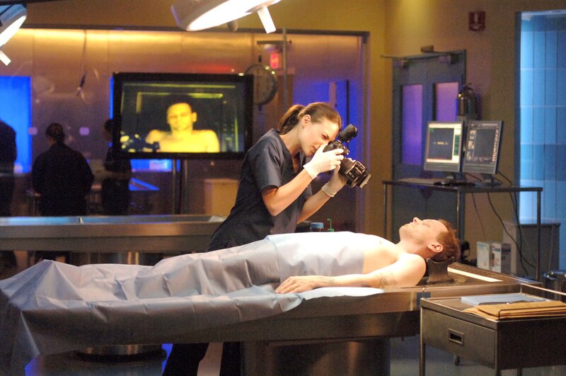 Stella Bonasera (Melina Kanakaredes) und Mac Taylor (Gary Sinise) glauben der Stripperin Dori (Charity Rahmer, l.). Warum sollte sie den Vater ihres ungeborenen Kindes ermorden?