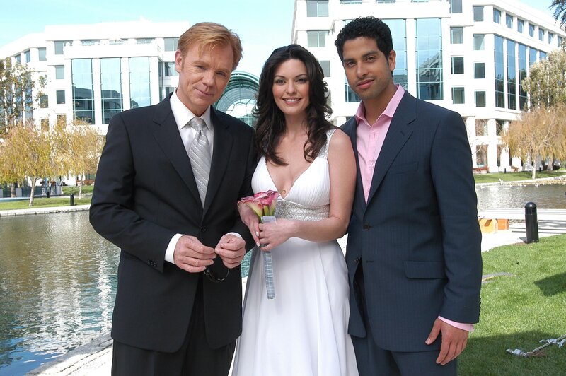 Horatio (David Caruso, li.) und Erics (Adam Rodriguez) Schwester Marisol (Alana De La Garza) machen ihr Glück perfekt und heiraten.