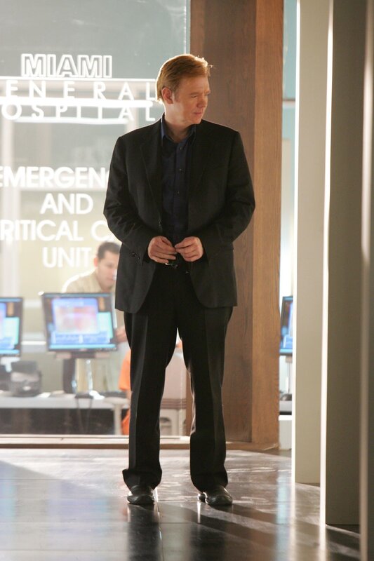 Alexx (Khandi Alexander) hat die Explosion im Gerichtssaal überlebt und kümmert sich um die Verletzten, während Horatio (David Caruso, li.) den toten Wachmann inspiziert.