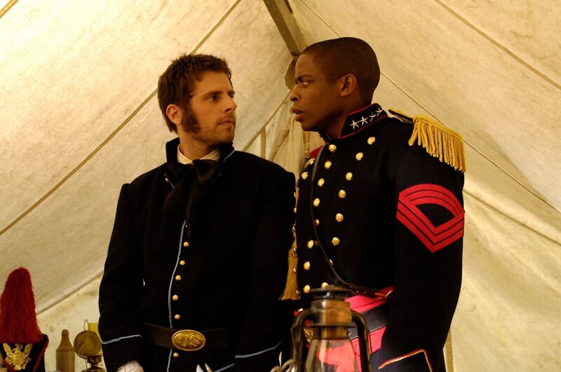 Shawn (James Roday) und Gus (Dule Hill) besuchen die Proben der Inszenierung des amerikanischen Bürgerkrieges, die von Detective Lassiter (Timothy Omundson) geleitet werden. Dieses Jahr wird die Schlacht bei Piper's Cove nachgestellt. Sally Reynolds (Claire Coffee) spielt in der Aufführung eine Krankenschwester, die den Anführer der Konföderierten, gespielt von Nelson Poe (Yves Cameron), tötet und so die Schlacht entscheidet. Bei der Probe verpasst Sally ihren Einsatz, aber trotzdem fällt Nelson tot vom Pferd - von einer echten Kugel getroffen. Ein neuer Mordfall für Shawn und Gus?