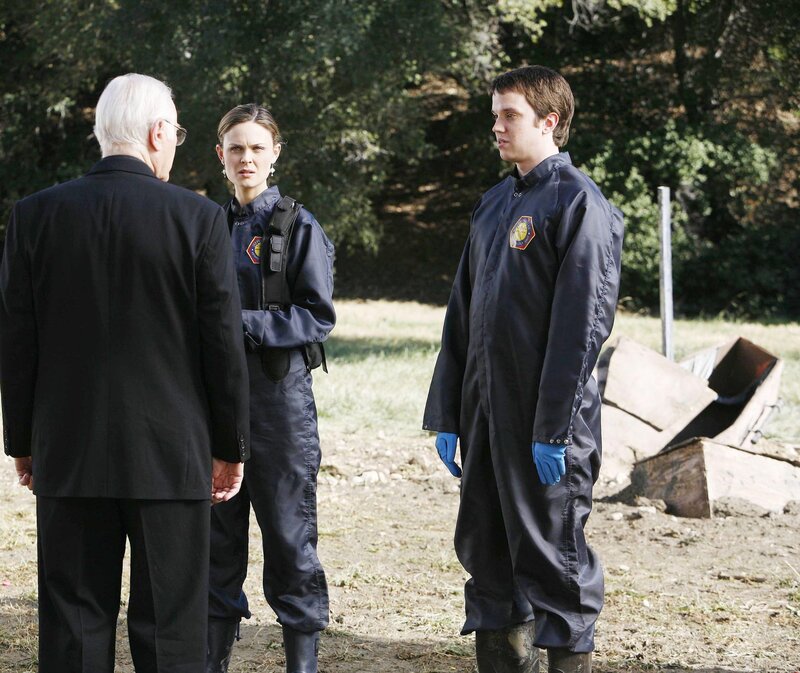 Als Brennan (Emily Deschanel, M.) und Zack (Eric Millegan, r.) von Pfarrer William Donlan (George Coe) gebeten werden, nach einem Wasserrohrbruch auf einem alten Friedhof einige aufgeschwemmte Leichen zu untersuchen, entdecken sie den Schädel eines Mannes, der erst vor Kurzem beerdigt worden ist.