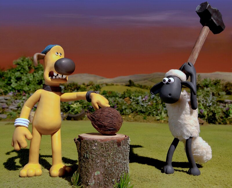 ARD/WDR SHAUN, DAS SCHAF (31), "Die Kokosnuss!", am Samstag (30.11.13) um 06:33 Uhr im ERSTEN. Ist Shaun ein guter Nussknacker? Bitzer kommen Zweifel.