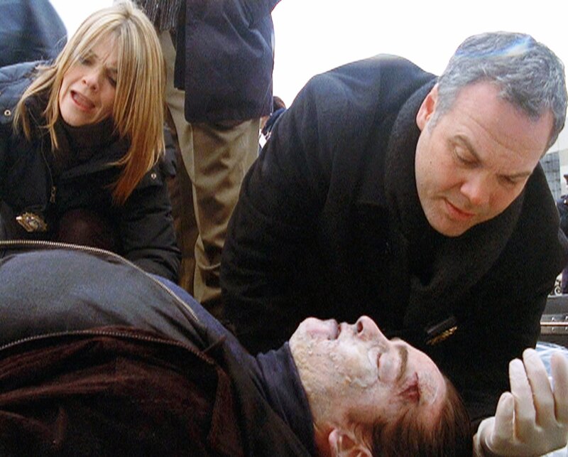 • Goren (Vincent D'Onofrio) und Eames (Kathryn Erbe) untersuchen den Leichnam des jungen Eric (Vincent Piazza). Was veranlasste den Jungen, auf das Dach des Bürogebäudes zu klettern?