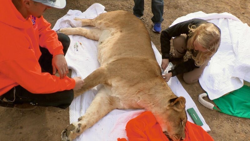 Dr. Jeff hat einen besonderen Patienten: Tigerpython Banana landet mit Atemproblemen auf seinem Behandlungstisch. Dr. Nichols platziert derweil Hormonimplantate bei Löwendamen im Wildlife-Park.