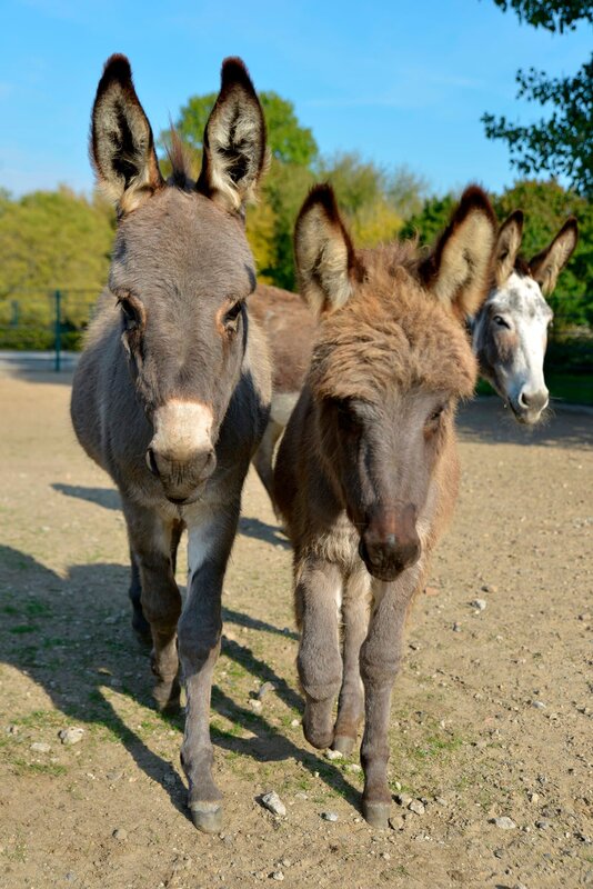Auf die Zwergeseldamen wartet heute Leinentraining.