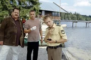 • Die Rosenheim-Cops „Wasserleichen unter sich“. Im Bild: Elena Pichl (Krista Posch, re.) redet beruhigend auf die wegen des Todes ihres Mannes vestörte Monika Barner (Anna Thalbach) ein.