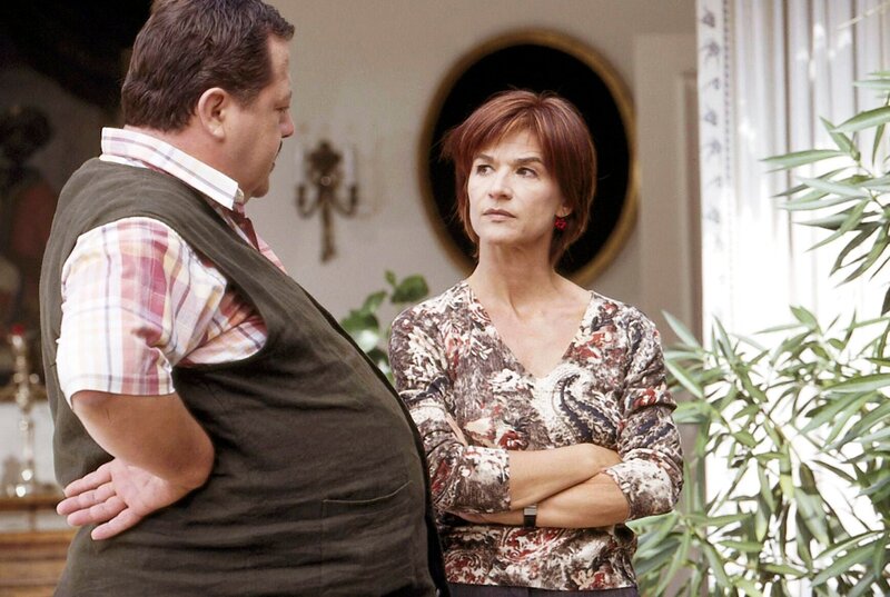 Die Rosenheim-Cops „Wasserleichen unter sich“. Im Bild: Elena Pichl (Krista Posch, re.) redet beruhigend auf die wegen des Todes ihres Mannes vestörte Monika Barner (Anna Thalbach) ein.