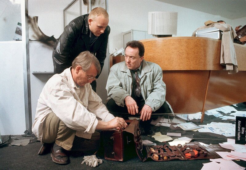 Bombendrohung in Dresden. Während die Polizei nach dem Sprengsatz sucht, überfallen am anderen Ende der Stadt zwei Männer die Filiale einer Bank. Ein anonymer Anrufer meldet sich, aber nur, um sich über Ehrlicher lustig zu machen. Er scheint den Kommissar zu kennen. Was dieser anfangs für einen schlechten Scherz eines Kollegen hält, wird zu einem gefährlichen Spiel. Versucht sich etwa auf diese Weise jemand an ihm zu rächen? Ein weiterer Überfall geschieht, und wieder entkommen die Gangster. Für Ehrlicher steht fest, dass es zwischen dem anonymen Anrufer und den Überfällen einen Zusammenhang gibt. Außerdem vermutet er, dass es sich bei dem Anrufer um einen ehemaligen Kollegen handelt, der vor Jahren vom Dienst suspendiert wurde. Doch er hat keine Beweise. Ein dritter Banküberfall geht schief. Einer der Männer wird verhaftet, sein Komplize flüchtet mit einem zehnjährigen Jungen als Geisel. Wie erwartet meldet sich der Unbekannte per Telefon. Diesmal fordert er ein Fluchtauto und eine Million Mark für seine beiden Komplizen, anderenfalls würde er ein öffentliches Gebäude in die Luft sprengen. Ehrlicher und Kain gehen auf diese Forderung ein, in der Hoffnung von den beiden zu dem Drahtzieher geführt zu werden. Hauptkommissar Ehrlicher: Peter Sodann Kommissar Kain: Bernd Michael Lade Wolf: Ralf Bauer Siggi: Heinz Weixelbraun Walter: Eberhard Mellies Leo: Günter Junghans Lore: Monika Pietsch Tommi: Thomas Rudnick Susanne: Dagmar Sitte Leiter der Dienststelle: Dieter Wien Höherer Offizier: Wolfgang Dehler und andere
