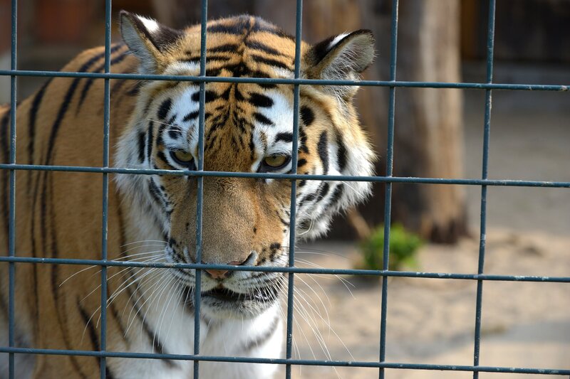 Im Alfred-Brehm-Haus des Berliner Tierparks herrscht noch Mittagsruhe im Revier der sibirischen Tiger. Das wird sich sehr bald ändern, denn hinter den Kulissen bereiten die Tierpflegerinnen Angelika Berkling und Petra Schröder eine Überraschung vor: Jutesäcke mit Holzwolle-Füllung. Während Tigervater Darius sich dem neuen Spielzeug eher vorsichtig nähert, gibt es nebenan kein Halten mehr. Die Tigervierlinge zeigen mit der Holzwolle, was eine sechzehnköpfige Rasselbande so alles drauf hat. - Tiger Darius.