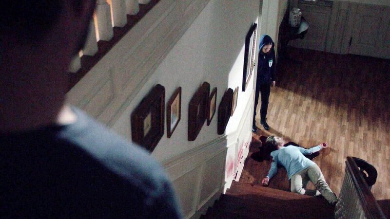Michelle Stevens (Andrea du Roi, liegend) ist auf einer Treppe gestürzt und hat sich dabei tödliche Kopfverletzungen zugezogen. Ihre Tochter Clair (Lexi Ainsworth), die sie gefunden hat, ist schwer traumatisiert. Auch ihr Mann Robert (Darri Ingolfsson) ist erschüttert über den plötzlichen Tod seiner Gattin.