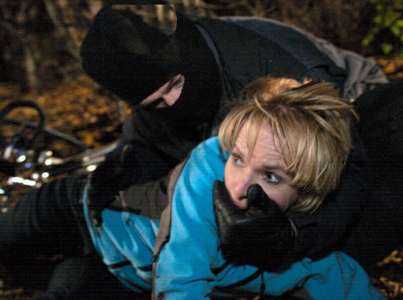 • Kathrin (Andrea Kathrin Loewig) wird auf dem Weg nach Hause im Park überfallen. Ein maskierter Mann versucht sie zu vergewaltigen.