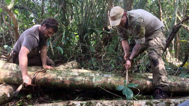 Josh James and Grady Powell tying logs together in Nicaragua.