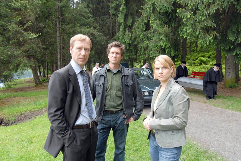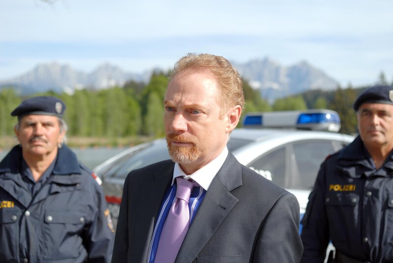 • „Soko Kitzbühel", "Das Spiel ist aus." Es ist eine illustre Pokerrunde, zu der Poker-Profi Gerd Schneider in sein Kitzbüheler Haus geladen hat. Am Tisch sitzen der Arzt Dr. Thomas Wagenbach, der Versicherungsmakler Bernhard Nissl und Walter Wegmann, ein Maschinenhändler aus Kirchberg, dessen Spielsucht vor einigen Jahren den Betrieb beinahe zugrunde gerichtet hätte. An diesem Nachmittag gewinnt Wegmann eine hohe Summe - und wird auf dem Heimweg ermordet. Die Mitglieder der Pokerrunde beschuldigen sich alle gegenseitig - immerhin hat jeder von ihnen viel Geld an Wegmann verloren. Aber auch die Ehefrau des Opfers, Brigitte Wegmann und ihr Vater Johannes Gerber, ein Vermögens- und Anlageberater, sind nicht unverdächtig, hätte Wegmann doch fast die gesamte Familie ruiniert. Im Bild (v.li.): Oliver Stritzel (Gerd Schneider), Andreas Kiendl (Klaus Lechner), Kristina Sprenger (Karin Kofler).