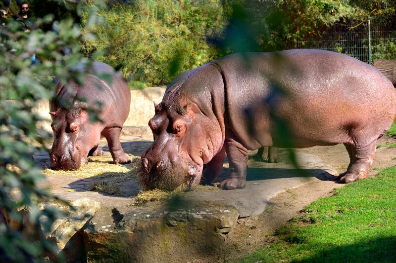 Das Wasser im Becken des Flusspferdhauses wird ausgetauscht. Nachdem die letzten Mitbewohner des Beckens, die Karpfen, in Sicherheit gebracht worden sind, machen sich die Tierpfleger an die Arbeit