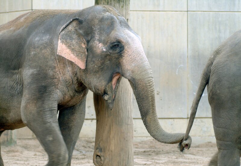 • Die Elefanten auf dem Weg ins Freigehege.