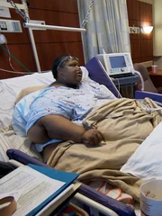 Teretha wiegt über 350 Kilo, ist seit Jahren ans Bett gefesselt und vollkommen von ihrer Familie abhängig. Die 47-Jährige aus Detroit, fühlt sich in ihrem Körper gefangen, ist depressiv und kann sich nicht mehr allein versorgen. Seit ihr Mann wegen Diabetes nicht mehr die Kraft zur Rundumpflege hat, leben sie beim gemeinsamen Sohn.