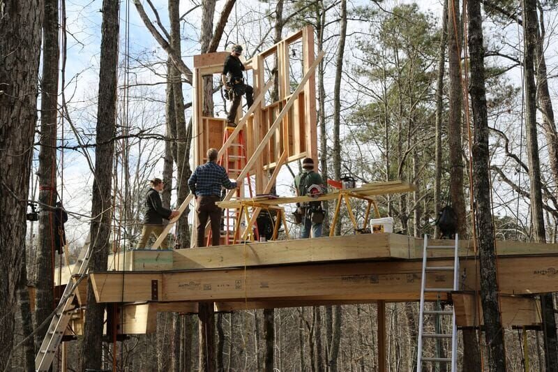 Pete Nelson und seine Profi-Handwerker zimmern eine halbe Autostunde von Atlanta entfernt ein Freizeit-Domizil der Superlative in die Baumkrone. Die Luxusherberge ist mit Designermöbeln ausgestattet.
