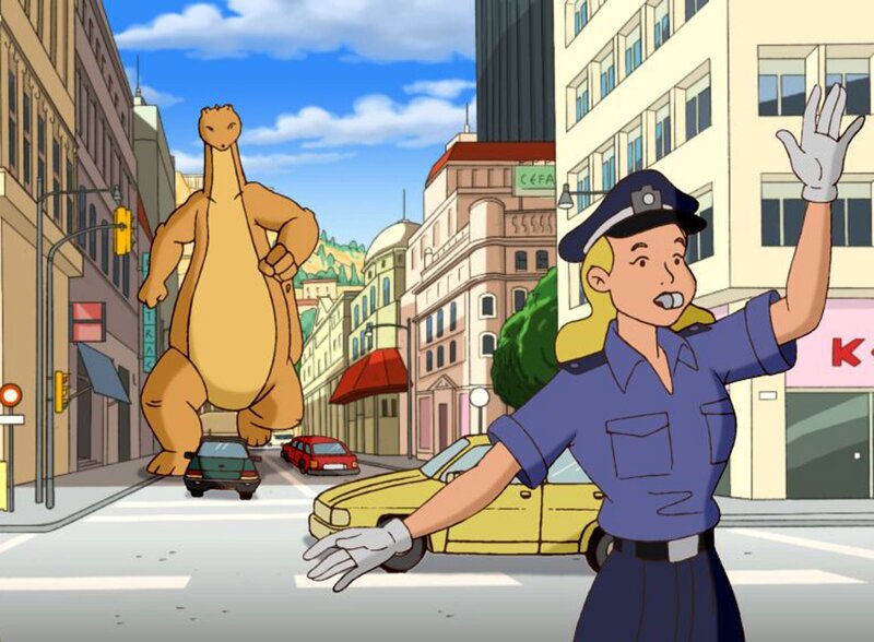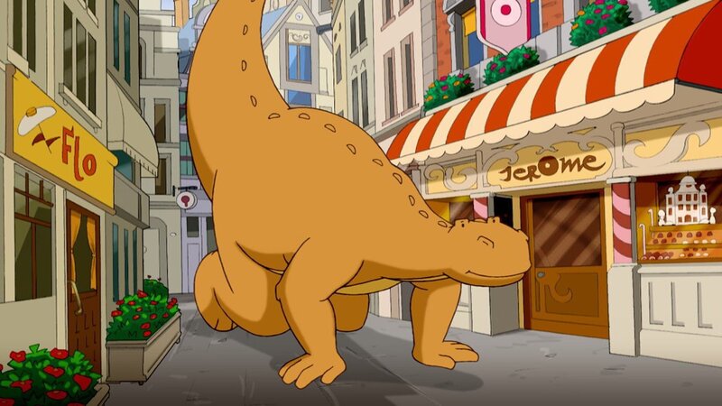 Tom, der freundliche Dinosaurier, landet nach einer abenteuerlichen Fahrt durch ein heftiges Unwetter in einer großen Stadt - es ist New York! Natürlich stiftet so ein Riesentier, wenn es im siebenten Stock durchs Fenster hereinschaut, einige Verwirrung. Zum Glück lernt Tom Wanda und Tip kennen, zwei Zirkuskinder, die seine Freunde werden. Leider muss er aber auch die Bekanntschaft von Mr. Carter, einem geldgierigen Karussellbetreiber, und dessen Handlangern machen: mit Miss Hatch, dem früheren Kindermädchen von Mr. Carter, und ihrem üblen Neffen Weedon. Die drei bringen es fertig, Tom einzufangen. Sie locken ihn mit Schokolade, der er nicht widerstehen kann, und sperren ihn in einen Käfig. Lange muss er da drin nicht sitzen - Wanda und Tip befreien ihn und nehmen ihn mit in den Zirkus, mit dem er nun rund um die Welt fahren wird.
