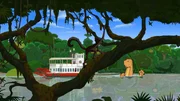 Mit dem Zirkus von Mrs. Hamilton ist angelangt. Hier ist der Dschungel noch so richtig wild, und Rupert macht gleich Bekanntschaft mit einer Anakonda, die sich gottlob in ihn verliebt. Die Freunde geraten zufällig in ein Eingeborenendorf das von Alvares, einem brutalen Kerl, terrorisiert wird der hier auf der Jagd nach Smaragden ist. Auch der alte Schamane hat außer einer Vision im Moment keine Hilfe anzubieten. Selbst Mrs. Hamiltons zirzensische Tricks bringen nichts. Und Tom, der als eine Art Geheimwaffe eingesetzt werden soll, verläuft sich im Urwald. Alvares will das ganze Dorf mit der Planierraupe platt machen, da erscheint das vom Schamanen angekündigte "doppelköpfige Wesen": Rupert, auf Tom reitend, stürmt ins Dorf und panikartig verlassen die Männer um Alvares und ihr smarter Anführer Dorf und Dschungel.