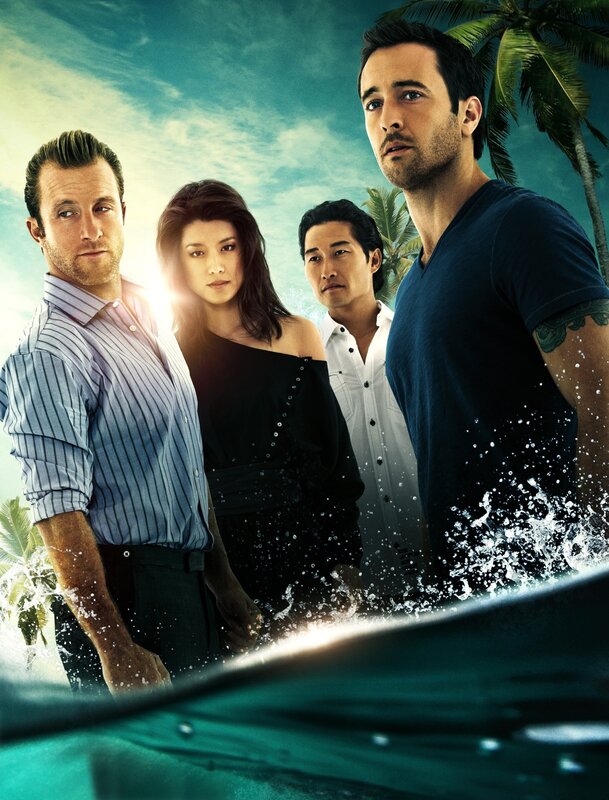 (7. Staffel) - Kämpfen gegen das organisierte Verbrechen auf Hawaii: Steve (Alex O'Loughlin, r.), Danny (Scott Caan, l.), Chin (Daniel Dae Kim, 2.v.r.) und Kono (Grace Park, 2.v.l.)