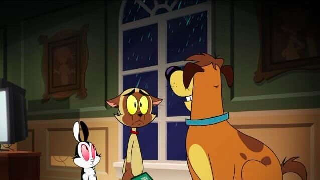 L-R: Harold (voiced by Brian Kimmet), Bunnicula (voiced by Chris Kattan), Chester (voiced by Sean Astin)