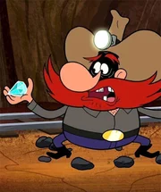 Yosemite Sam ist als Bergmann unterwegs und will in Bugs Bau nach Kohle graben.