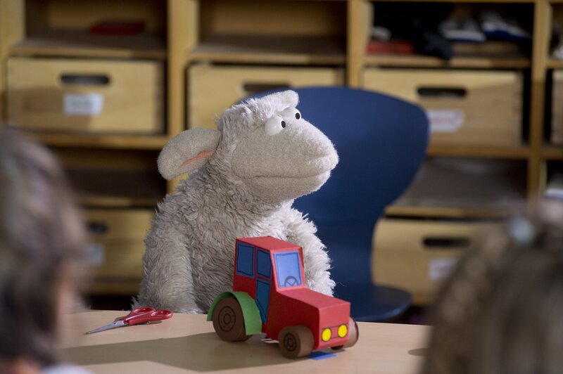 Der Wolf ist auf dem Weg in die Schule, Wolle und Pferd folgen ihm heimlich. Fast werden sie von der strengen Lehrerin erwischt und flüchten in eine Klasse. Plötzlich kommen jede Menge Kinder herein und die Lehrerin findet sie hinterm Lehrerpult. Doch so streng ist die Lehrerin eigentlich gar nicht. Und Wolle und Pferd haben bald richtig Spaß im Unterricht.
