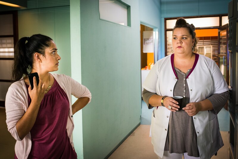• Frauke (Manuela Wisbeck, r.) wundert sich, dass Emine (Elmira Rafizadeh, l.) ihren Eltern nichts von der Schussverletzung ihres Bruders erzählt hat.