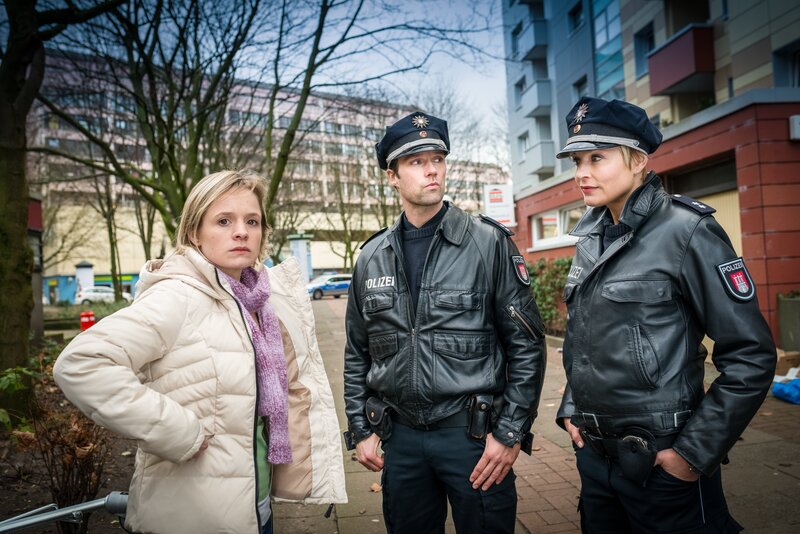 Während Haase (Fabian Harloff) Franzi (Rhea Harder-Vennewald) über den Zustand seiner Patientin ins Bild setzt, schaut sich Hans (Bruno F. Apitz) den Tatort an.