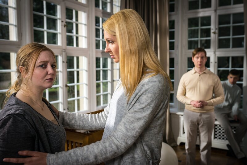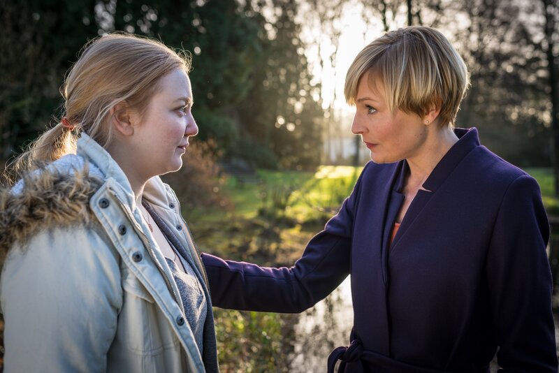 Inga Hollbeck (Constanze Behrends, r.) tröstet Jennifer (Lilli Fichtner, l.). Es besteht der Verdacht, dass Jennifers Vater den Leiter des Therapiezentrums niedergeschlagen und schwer verletzt hat.