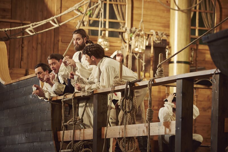 Die Crew der Bounty mit Alexander Schubert, Max Giermann, Antoine Monot, Holger Stockhaus und Komparsen.