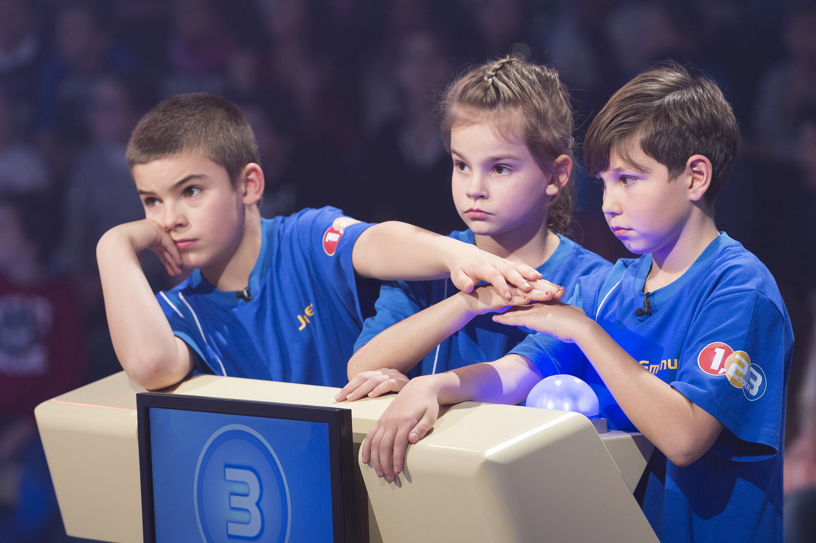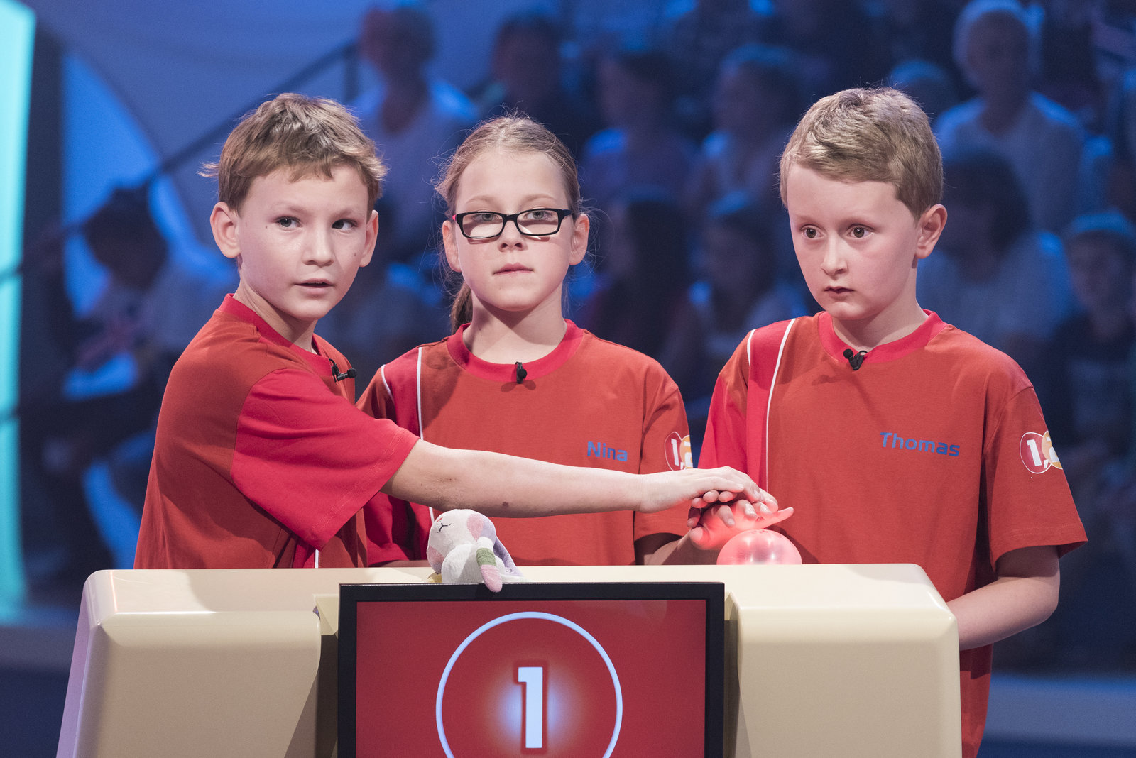 Eltons MärchenstundeDie Kandidaten aus Magdeburg/Deutschland warten auf die nächste Buzzer-Frage.Bild: © ZDF und Ralf Wilschewski