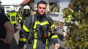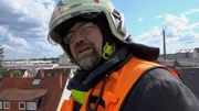 Alarm auf der BaustelleWohnungsbrand im Mehrfamilienhaus: Wachgruppenleiter Sven Henrich (links) von der Feuerwehr Gießen unterwegs zu einem Einsatz.Bild: © HR