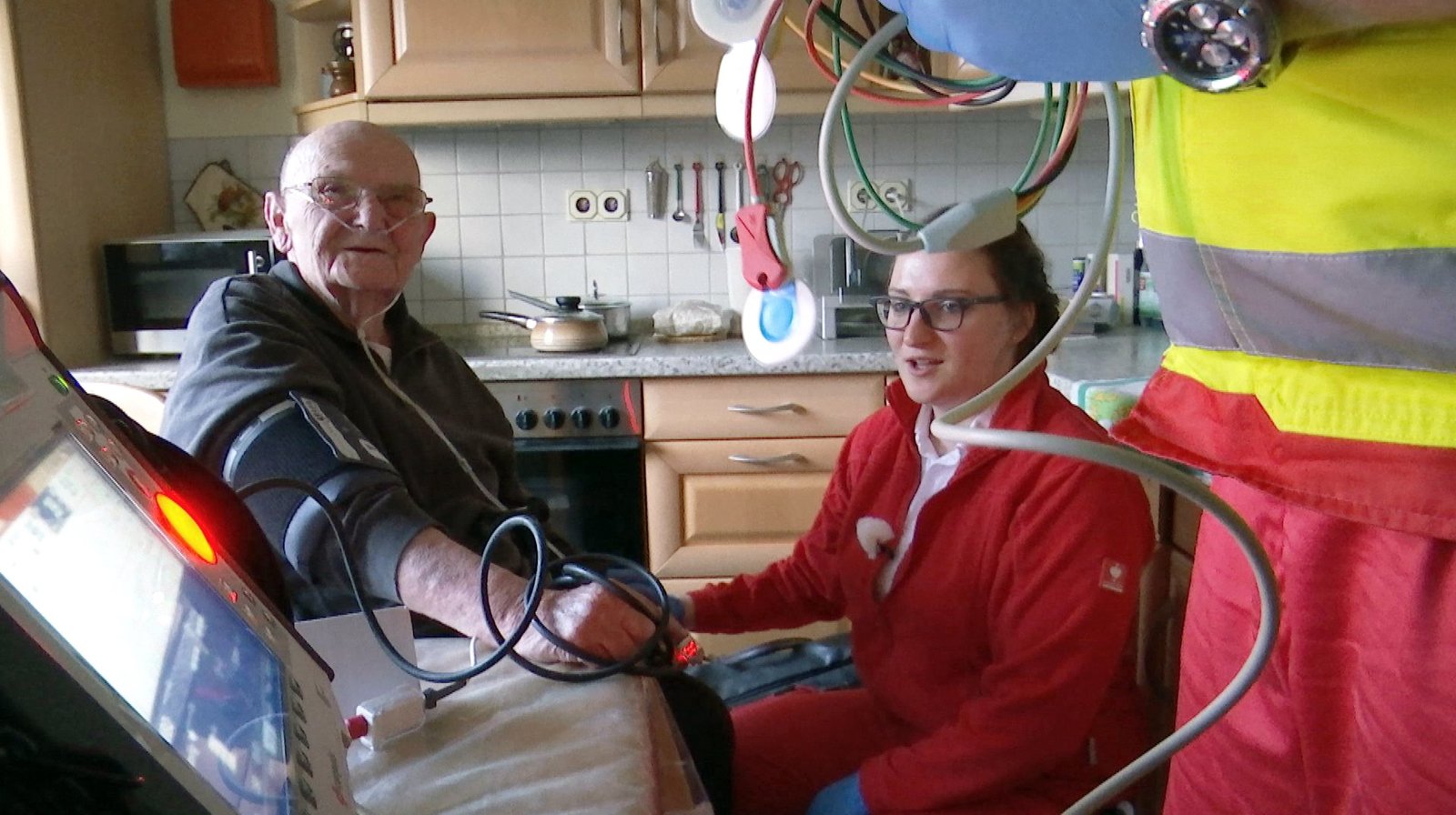 Folge 3Die Notfallsanitäterin Laura Peter vom Deutschen Roten Kreuz Fulda kümmert sich um einen Patienten mit Atemnot.Bild: © HR