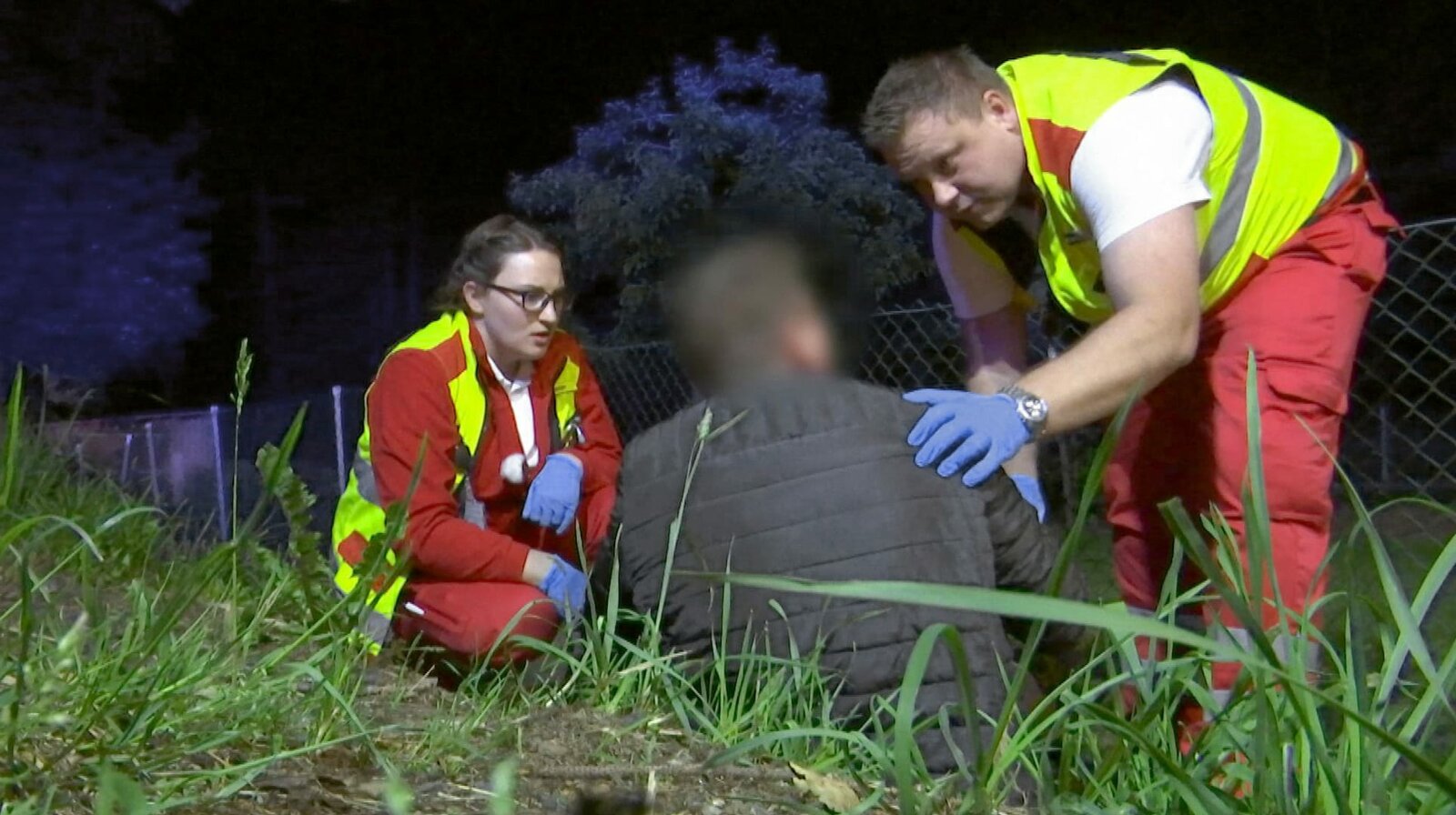 Die Sanitäter Laura Peter und Michael Michalowicz vom Deutschen Roten Kreuz Fulda sorgen sich um ihren jungen Patienten.Bild: © HR
