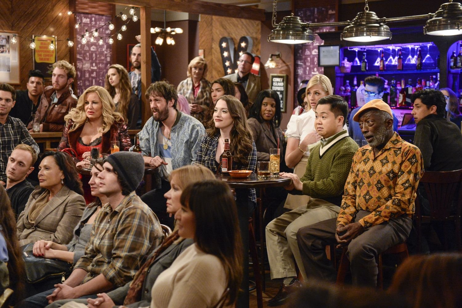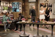 Geburt ohne SchanklizenzWährend Earl (Garrett Morris, 2.v.l.) versucht, den Rapper 2 Chainz (2 Chainz, l.) bei Laune zu halten, macht J. Petto (Andy Dick, M.) Caroline (Beth Behrs, 2.v.r.) und Max (Kat Dennings, r.) einigen Stress - ausgerechnet am Tag der Eröffnung ...Bild: © Warner Bros. Television