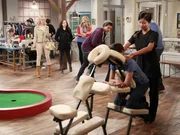 Can-Drew AndrewAls Caroline bei einer Promo-Tour für einen Film über ihr Leben auf ihren Exfreund trifft, packt Bobby (Christopher Gorham, M.) die Eifersucht. Doch sind (v.l.n.r) Oleg (Jonathan Kite), Han (Matthew Moy), Sophie (Jennifer Coolidge) und Earl (Garrett Morris) wirklich die richtigen für Beziehungstipps?Bild: © Warner Bros. Television