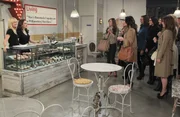 30 ZentimeterUm die Zustimmung der Pizzeria-Inhaberin Angie und ihres Bruders Angelo (Anthony Marciona, l.) zu erhalten, deren Hinterzimmer für ihre angrenzende Dessert-Bar zu nutzen, nehmen Caroline (Beth Behrs, 2.v.r.) und Max (Kat Dennings, r.) Einiges auf sich ...Bild: © 2016 Warner Brothers
