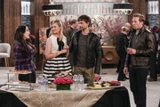 Der verheiratete SingleAls Caroline (Beth Behrs, l.) von Nicholas zum Abendessen eingeladen wird, bittet sie Max (Kat Dennings, M.) und Deke (Eric André, r.), sie zu begleiten, damit sie auf sie aufpassen können und sie nichts tut, was sie später bereuen wird ...Bild: © Warner Bros. Television