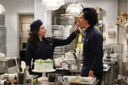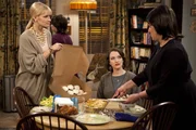 Der perfekte LunchCaroline (Beth Behrs, r.) veranstaltet ein nobles Essen für ihre Großmutter, die gerade aus dem Koma erwacht ist und nichts von den finanziellen Nöten der Familie ahnt. Um der Oma Opulenz vorzugaukeln, spannt sie Max (Kat Dennings, l.) und den Rest des Diner-Teams als Bedienstete ein, doch ob die sich als Dienstpersonal so gut machen?Bild: © Warner Brothers Lizenzbild frei