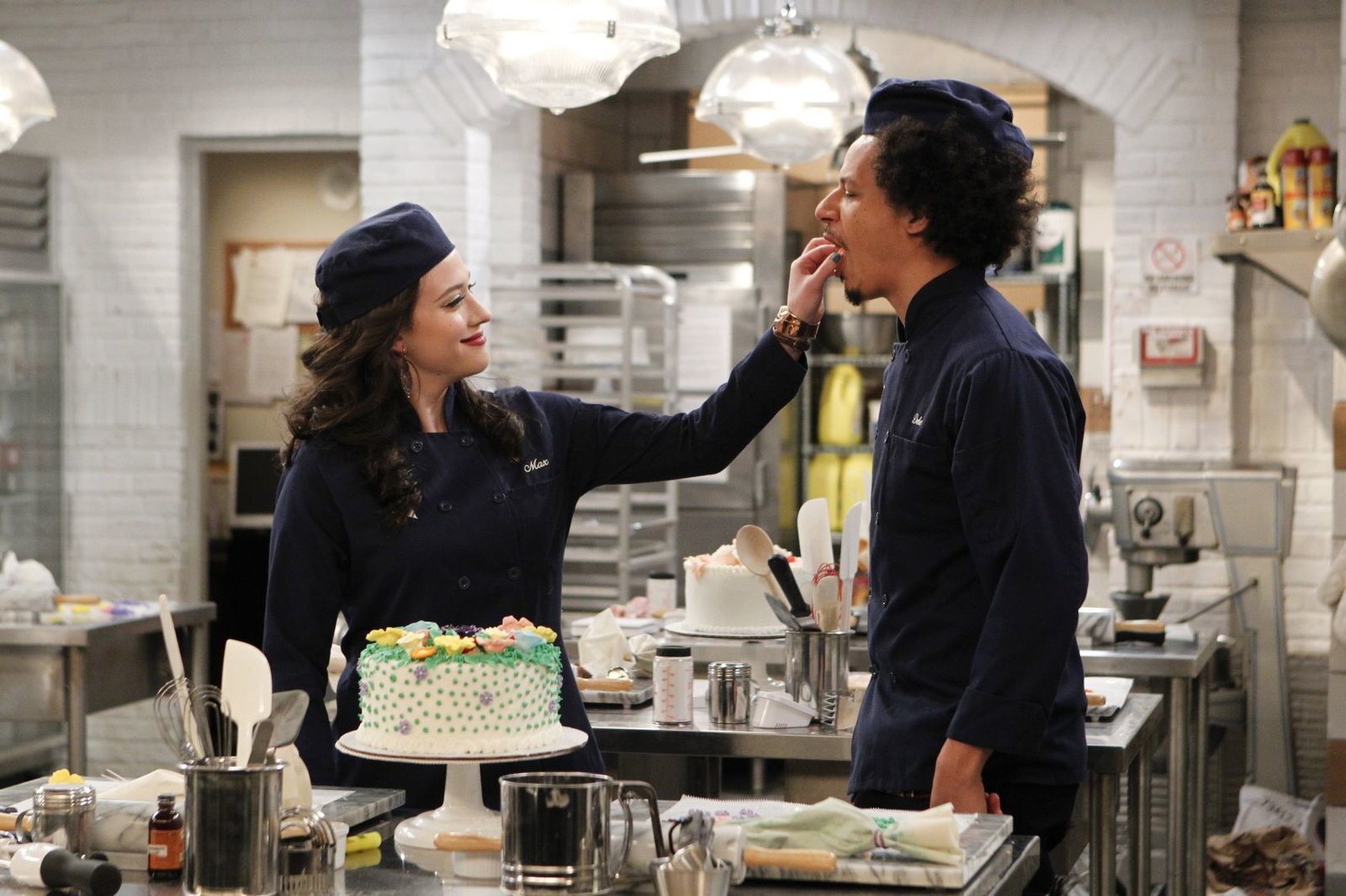 Die traurige GeschichteMax (Kat Dennings, l.) ist sich sicher, dass Adam (Miles Fisher, r.) mit Caroline flirtet. Doch hat sie damit recht?Bild: © 2016 Warner Brothers