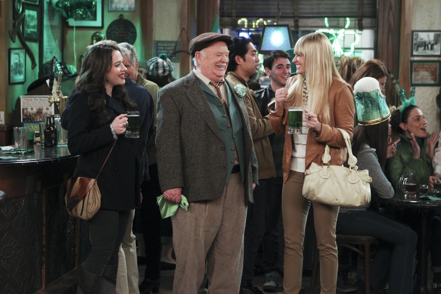 Scotch und FischErleben einen ganz besonderen St. Patrick's Day: Max (Kat Dennings, l.), Caroline (Beth Behrs, r.) und Blarney Bill (Brian Doyle-Murray, M.) ...Bild: © Warner Bros. Television